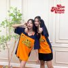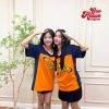 Mẫu áo lớp cổ bẻ tone cam phối xanh than in hình cực chất